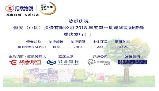 8月30日,尊龙时凯人生就是搏官网(中国)投资有限公司发行2018年度第一期超短期融资券,发行金额10亿元,期限为270天,主体评级AAA。最终发行价格4.15%,全场申购22.8亿,申购比2.28倍。